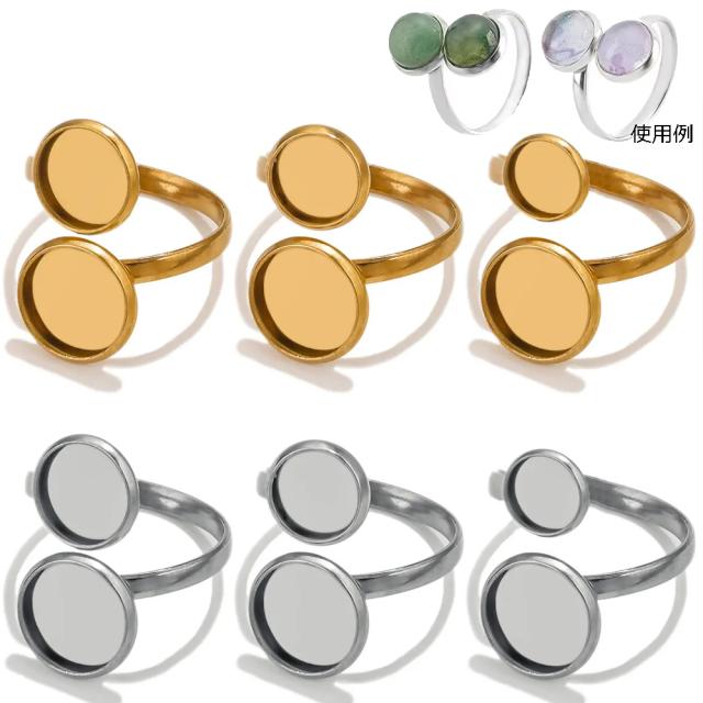 [6mm用 8mm用 10mm用 12mm用] ダブルカボション用 丸皿ステンレスDIYリングパーツ 1個販売 ファランジリング 指輪 カメオ ステンレスリング フリーサイズ ペアリング プレゼント 結婚 記念日 誕生日 手作り ハンドメイド 金具 クラフト 自分で作る ミール皿