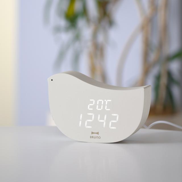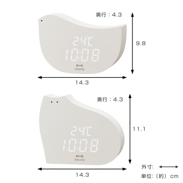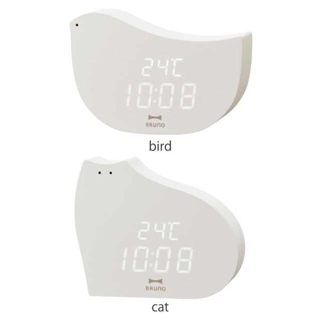 BRUNO 置き時計 モチーフクロック 温度計付き ( ブルーノ 時計 置時計 鳥 ねこ デジタル アラーム 目覚まし時計 かわいい インテリア 日付 温度表示 機能付き 電池式 USB接続可能 )