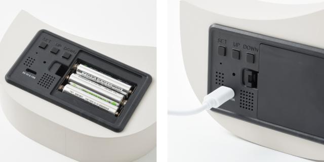 背面の電池カバーを開けて単4形アルカリ乾電池(別売り)を3本入れてください。場所を選ばず使用することができます。また、付属のUSBケーブルを接続して使用することもできます。電池がなくても使用でき、交換の手間もないので経済的です。