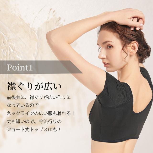 前も後ろも襟ぐりが広いデザインなので、ネックラインが広いトップスも着用しやすいです