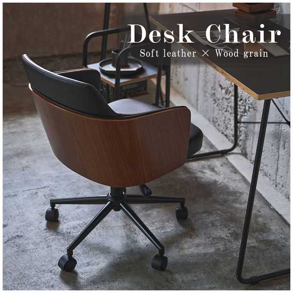 ●オフィスや自宅で活躍する、ソフトレザー×木目調のデスクチェア。