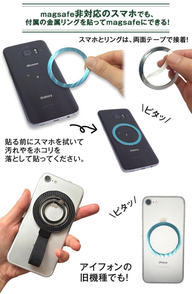 ※マグセーフ非対応用の金属リングを取り付けた場合、糊が残ったりロゴ等のメッキなど剥がれるおそれがあります。