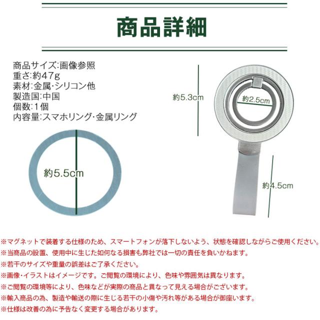 ※スマートフォンやスマートフォンケースの素材により、金属リングが設置できない可能性があります。