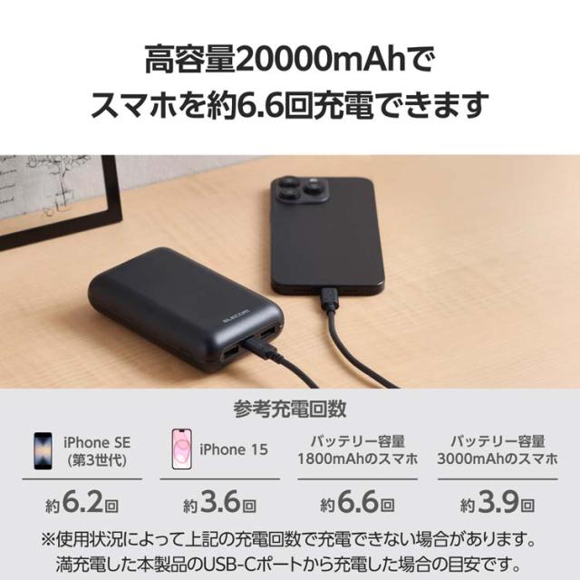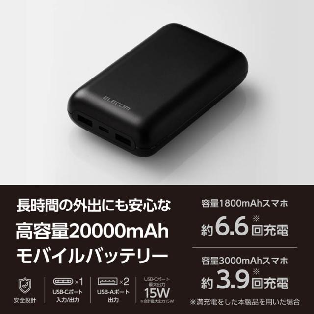 EC-C39BK大容量モバイルバッテリー(20000mAh/15W)