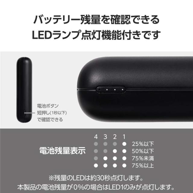 ●電池残量は4段階のLEDランプ点灯で確認可能です。