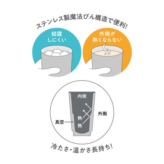 ●熱々の飲みものを入れても外側が熱くなりません。