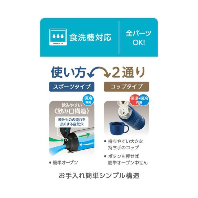 ●スポーツタイプ:飲みやすい飲み口構造、簡単オープン