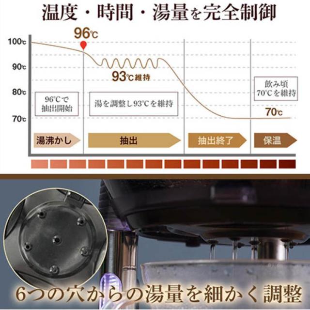 ●コーヒーのプロがこだわる「Golden extraction temperature」(ゴールデン抽出温度)を正確に管理。蒸らし、回して淹れるお湯の注ぎ方など、プロの手順そのままで雑味やブレのない安定した美味しさを実現しました。