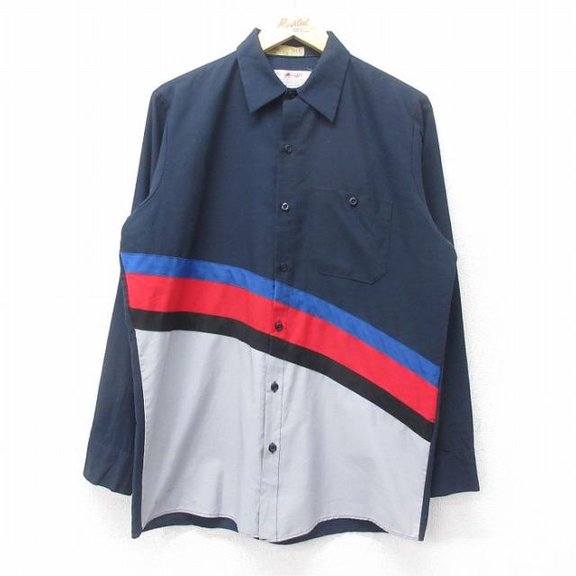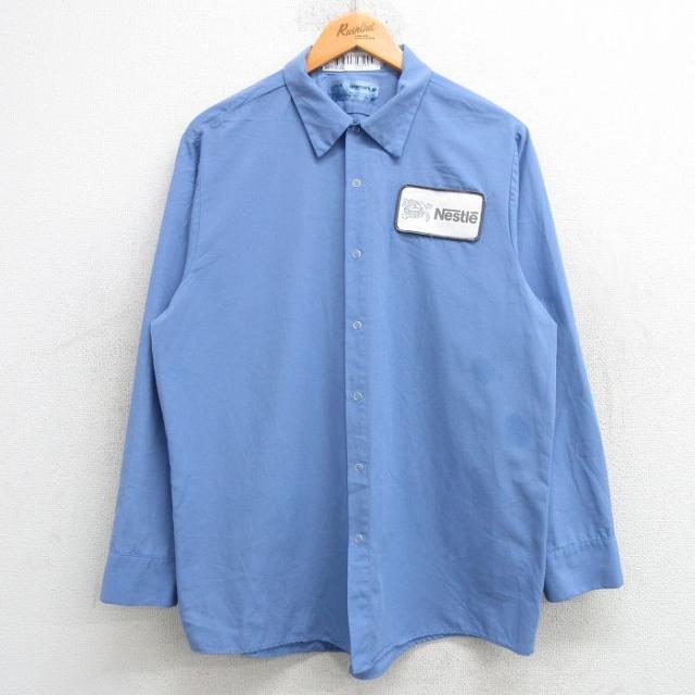 【商品名】 L★古着 長袖 ワーク シャツ メンズ ネスレ 薄紺