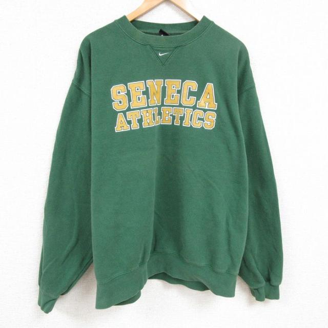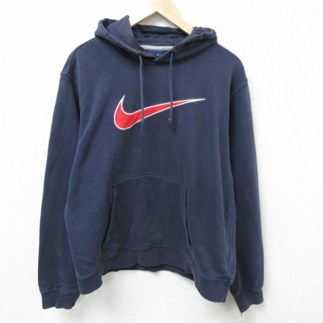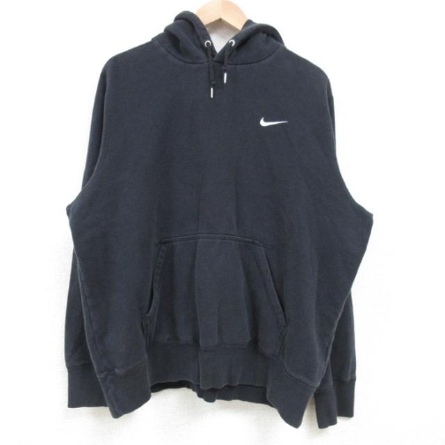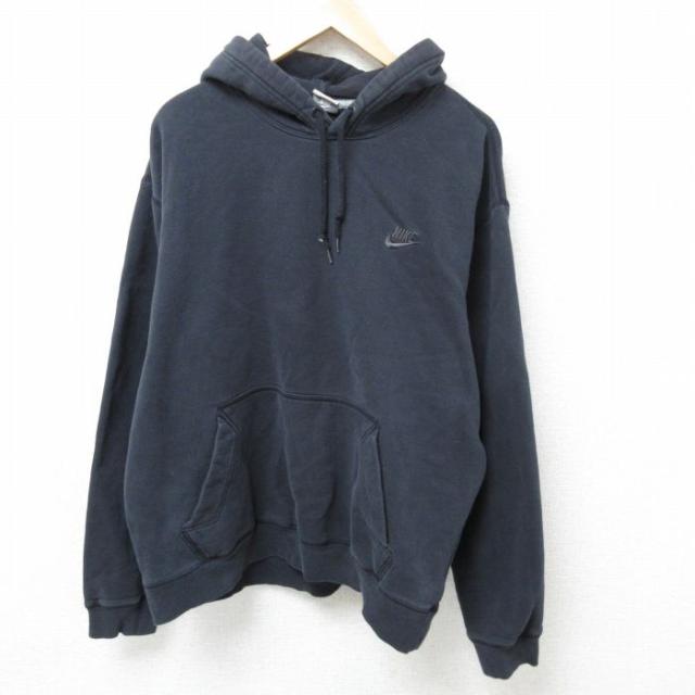 古着 ナイキ NIKE 長袖 スウェット パーカー メンズ 00年代 00s ワンポイントロゴ グレー 霜降り XLサイズ 中古 スエット トレ 中古 古着