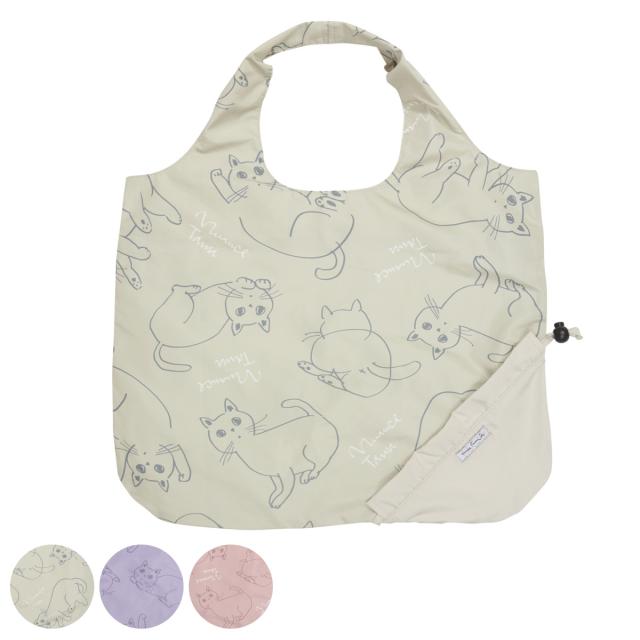 エコバッグ 巾着収納 ネコ 持ち運び ( マイバッグ エコバック マイバック レジ袋 コンパクト トート 巾着 大容量 撥水 軽量 レジバッグ サブバッグ 買い物バッグ ショッピングバッグ おしゃれ )
