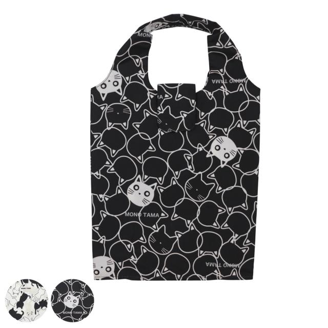 エコバッグ モノたま Sサイズ 面テープ止め ( マイバッグ エコバック マイバック レジ袋 コンパクト トート 折りたたみ マチ 撥水 軽量 レジバッグ サブバッグ 買い物バッグ ショッピングバッグ おしゃれ ネコ )