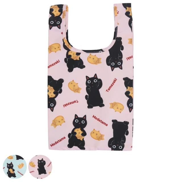 エコバッグ めでたま コンビニバッグ マチ付き 折りたたみ ( マイバッグ エコバック マイバック レジ袋 コンパクト トート マチ 撥水 軽量 レジバッグ サブバッグ 買い物バッグ ショッピングバッグ おしゃれ ネコ )