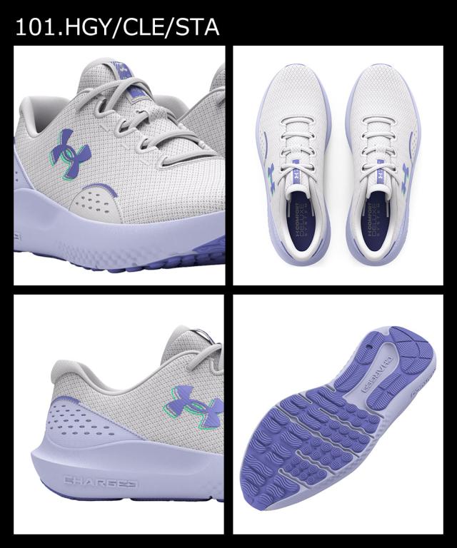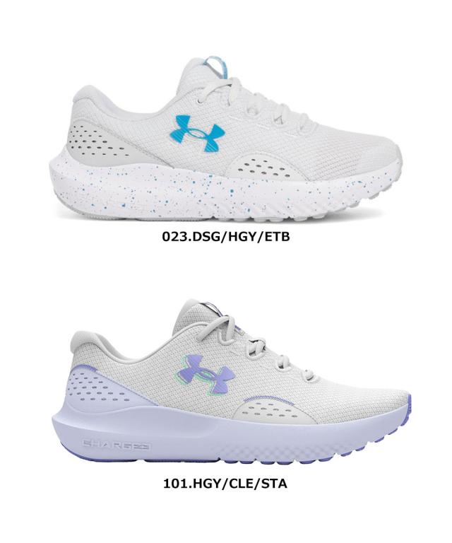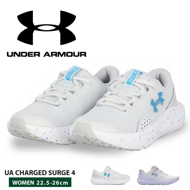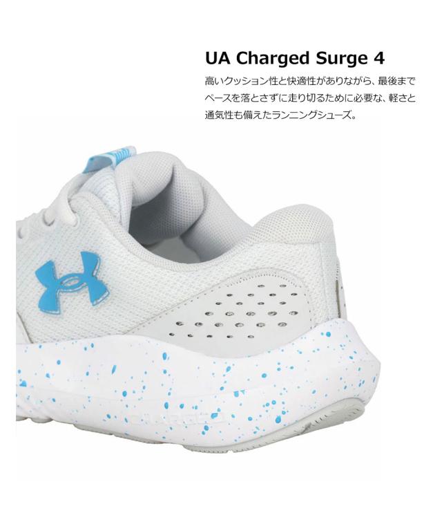 アンダーアーマー シューズ レディース ランニングシューズ メッシュ 通気性 クッション性抜群 快適 軽量 軽い 疲れにくい ブランド トレーニング ジム フィットネス ジョギング ランニング 部活 雨 白 ホワイト グレー UNDER ARMOUR UAチャージド サージ4 3027007
