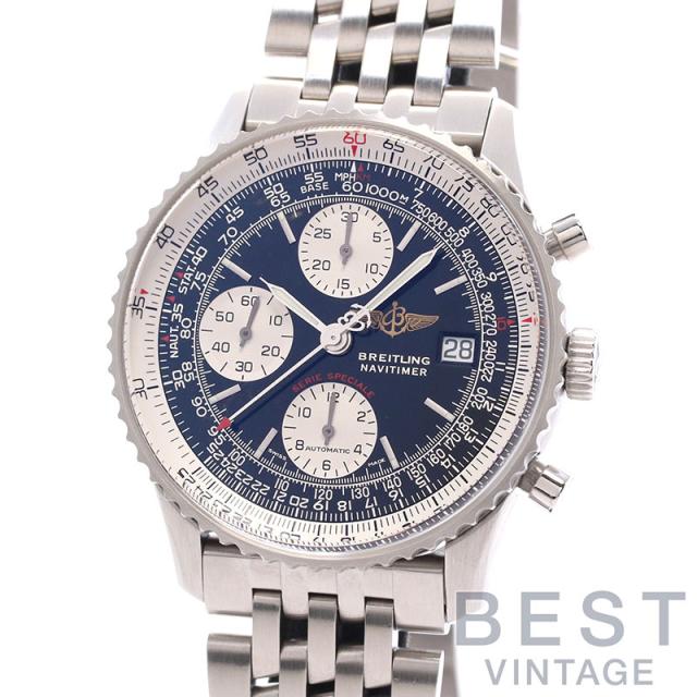 航空用回転計算尺を装備して1952年に発表されて以来、世界で最も愛されるクロノグラフの一つというステータスを維持し続けている「ナビタイマー」コレクション。こちらはブライトリングのアクロバット飛行チーム「ブライトリング・ファイターズ」の名を冠し、期間限定生産されたスペシャルエディションです。当店オーバーホール済み。