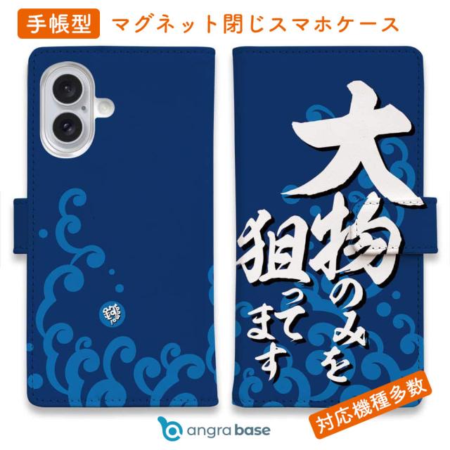 スマホケース 手帳型 カード収納 マグネット iPhone17 Pro Max iPhone Air iPhone16e iPhone16 Pro Max 16 Plus 15 Pro Max Xperia 10 VII Galaxy AQUOS ARROWS Pixel10 XL 釣り 魚 ルアー 釣りざんまい 大物のみを狙ってます_波飛沫