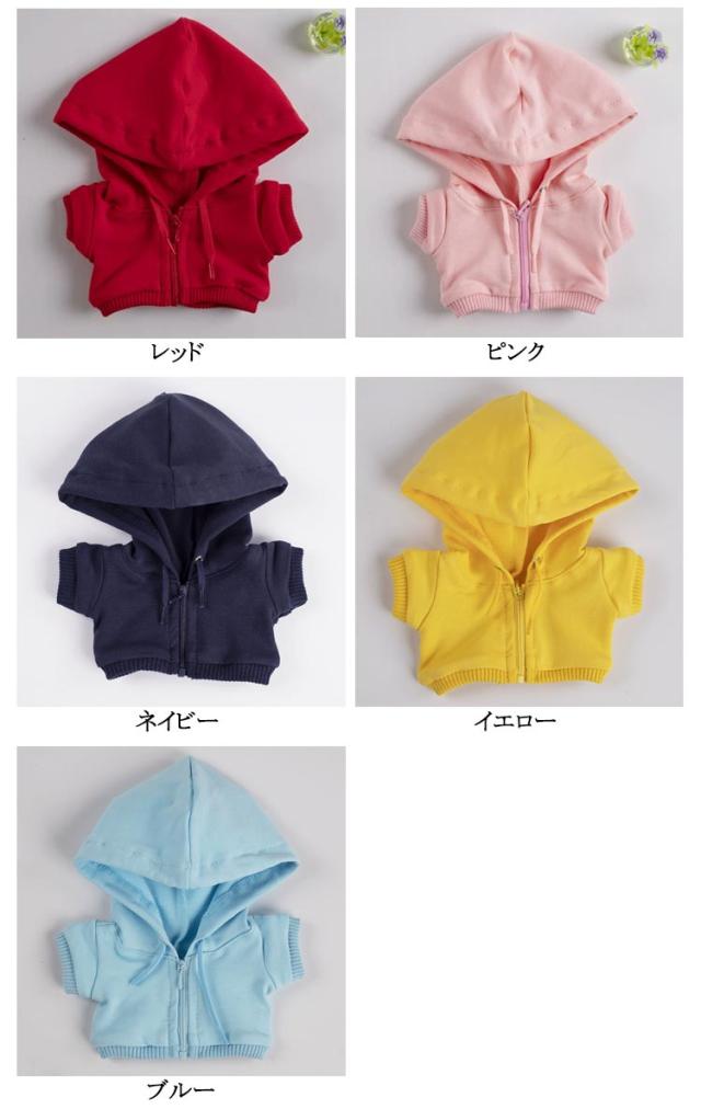 | 10cm、15cm、20cmぬいぐるみ用ジップアップパーカー! なデザインでどの子にも合います。 フードは被ることも可能なサイズです。 | |
