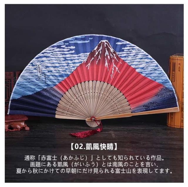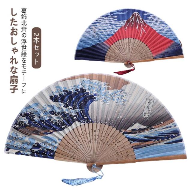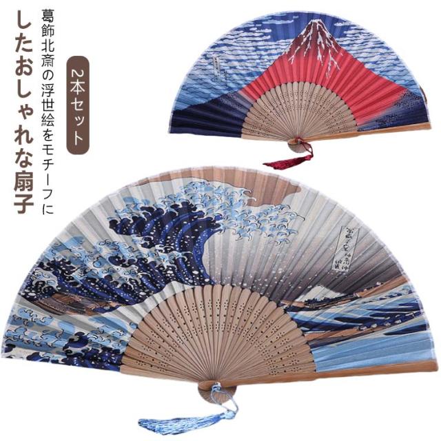 【2本セット】 和柄 扇子 富嶽三十六景 おしゃれ センス メンズ レディース 男女兼用 葛飾北斎 浮世絵 神奈川沖浪裏 赤富士 凱風快晴 富士山 波 飾り シルク 竹 男性用 女性用 父の日 お土産 おみやげ 外国人 観光 ギフト