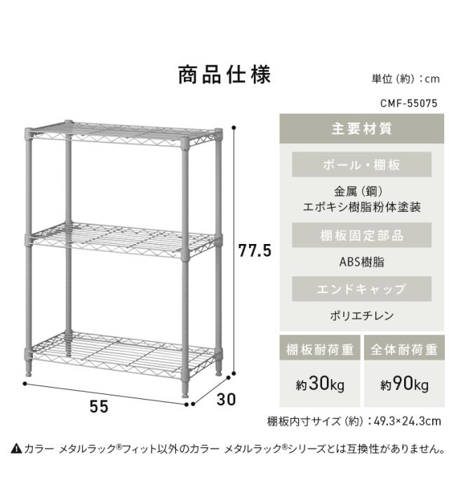 スチールラック 幅55 奥行30 3段 カラーメタルラック アイリスオーヤマ * CMFー55075 メタルラック スリム スペパ おしゃれ マット 艶消し ホワイト ブラック ダークグレー グレージュ 組立簡単 工具不要 棚 メタルシェルフ オープンラック