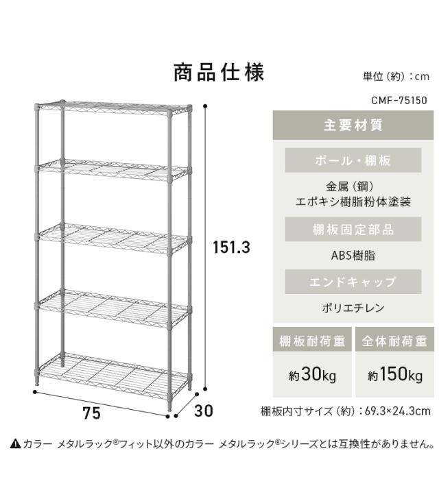 スチールラック 幅75 奥行30 5段 カラーメタルラック アイリスオーヤマ * CMFー75150 メタルラック スリム スペパ マット 艶消し ホワイト ブラック ダークグレー グレージュ 組立簡単 工具不要 棚 メタルシェルフ オープンラック 送料無料