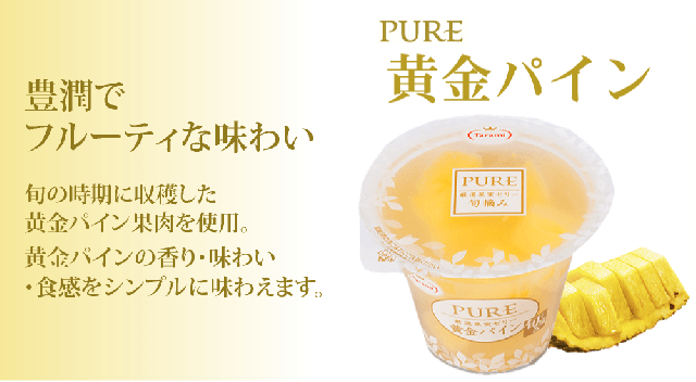 ■原材料名:パイン(果実(フィリピン)、果汁)、砂糖・果糖ぶどう糖液糖、寒天/ゲル化剤(増粘多糖類)、酸味料、酸化防止剤(ビタミンC)、香料