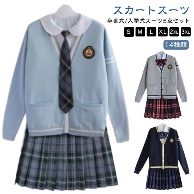女子 コスプレ 入学式スーツ 高校生 制服 学生 コスプレ衣装 【5点セット】 プリーツスカート 卒業式スーツ セットアップ 女の子 上下セット セーター 【5点セット】 卒業式 フォーマルスーツ スーツ キッズ ジュニア スカートスーツ 発表会 入学式 スーツ ニット