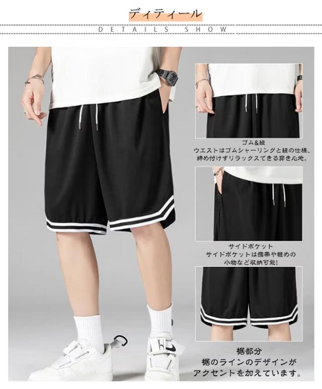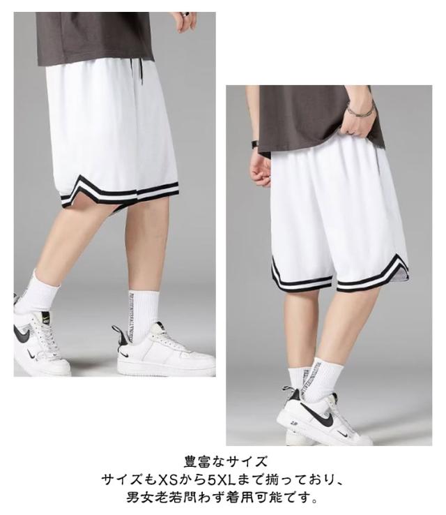 | 速乾・通気性・男女兼用 ハーフパンツ 通気性&速乾性に優れたメッシュ素材を使用 風を通しやすいので、汗をかいても素早く蒸発させ、快適な着心地を持続させます。 様々なシーンでも活躍! バスケットボールだけではなく、 幅広いスポーツシーンで活躍します。 ■スポーツウェアや運動着に ■ルームウェアに ■レジャー ■カジュアルに 豊富なカラーバ リエーション 全10色の豊富なカラーバリエーションからお好みの色を選べ、お揃いでのコーディネートも楽しめます。 豊富なサイズ サイズもXSから5XLまで揃っており、 男女老若問わず着用可能です。 <details> ポイント1 ・ゴム&紐 ウエストはゴムシャーリングと紐の仕様、 締め付けずリラックスできる穿き心地。 ポイント2 ・サイドポケット サイドポケットは携帯や軽めの小物など収納可能! ポイント3 ・裾部分 裾のラインのデザインがアクセントを加えています。 | |