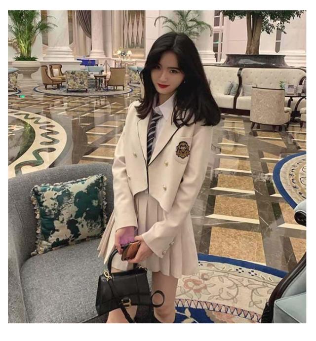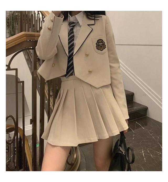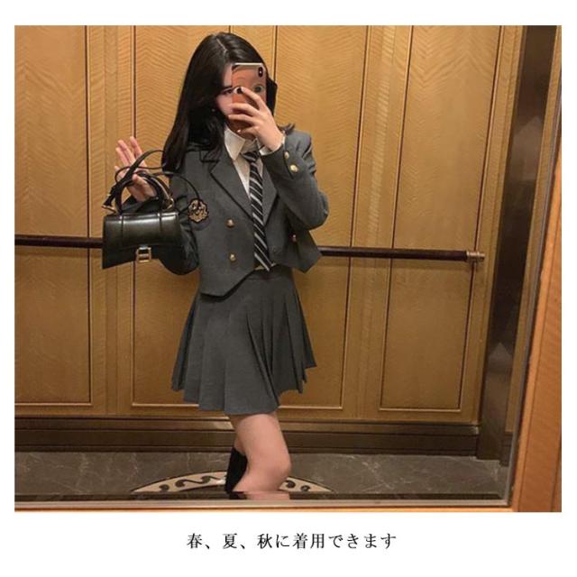 | カレッジ風スーツ(ジャケット+プリーツスカート)2点セット 春、夏、秋に着用できます 入学シーズン、卒業式、コスプレなどのアクティビティに適しています。 | |