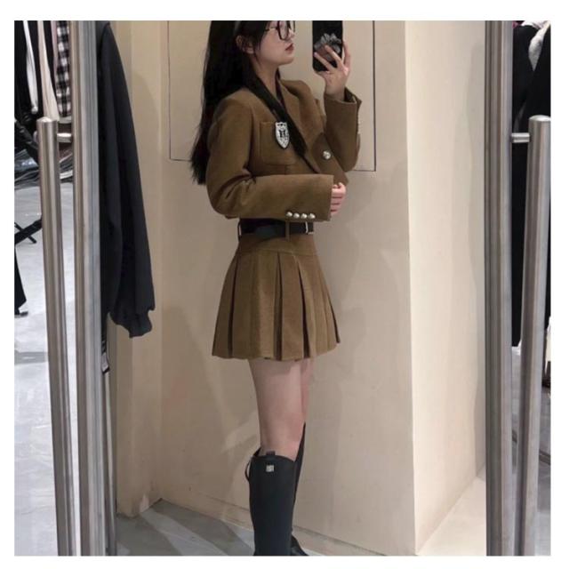 | カレッジ風スーツ(ジャケット+プリーツスカート)2点セット 春、夏、秋に着用できます 入学シーズン、卒業式、コスプレなどのアクティビティに適しています。 | |
