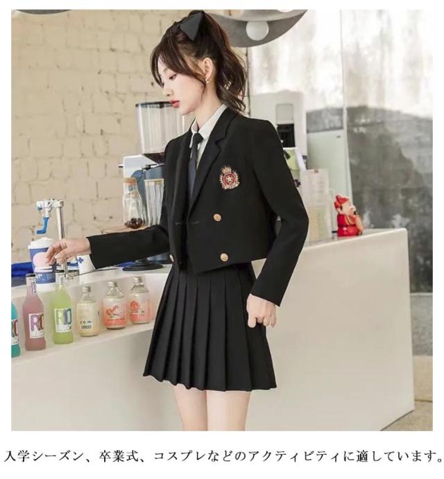 | カレッジ風スーツ(ジャケット+プリーツスカート)2点セット 春、夏、秋に着用できます 入学シーズン、卒業式、コスプレなどのアクティビティに適しています。 | |