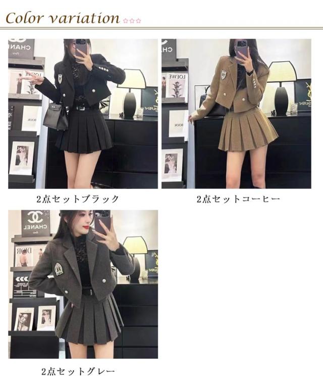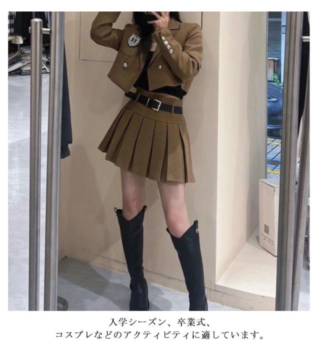| カレッジ風スーツ(ジャケット+プリーツスカート)2点セット 春、夏、秋に着用できます 入学シーズン、卒業式、コスプレなどのアクティビティに適しています。 | |