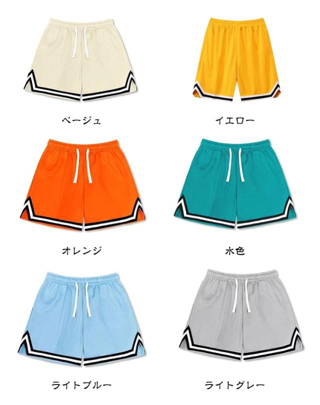 | 速乾・通気性・男女兼用 ハーフパンツ 通気性&速乾性に優れたメッシュ素材を使用 風を通しやすいので、汗をかいても素早く蒸発させ、快適な着心地を持続させます。 様々なシーンでも活躍! バスケットボールだけではなく、 幅広いスポーツシーンで活躍します。 ■スポーツウェアや運動着に ■ルームウェアに ■レジャー ■カジュアルに 豊富なカラーバ リエーション 全10色の豊富なカラーバリエーションからお好みの色を選べ、お揃いでのコーディネートも楽しめます。 豊富なサイズ サイズもXSから5XLまで揃っており、 男女老若問わず着用可能です。 <details> ポイント1 ・ゴム&紐 ウエストはゴムシャーリングと紐の仕様、 締め付けずリラックスできる穿き心地。 ポイント2 ・サイドポケット サイドポケットは携帯や軽めの小物など収納可能! ポイント3 ・裾部分 裾のラインのデザインがアクセントを加えています。 | |