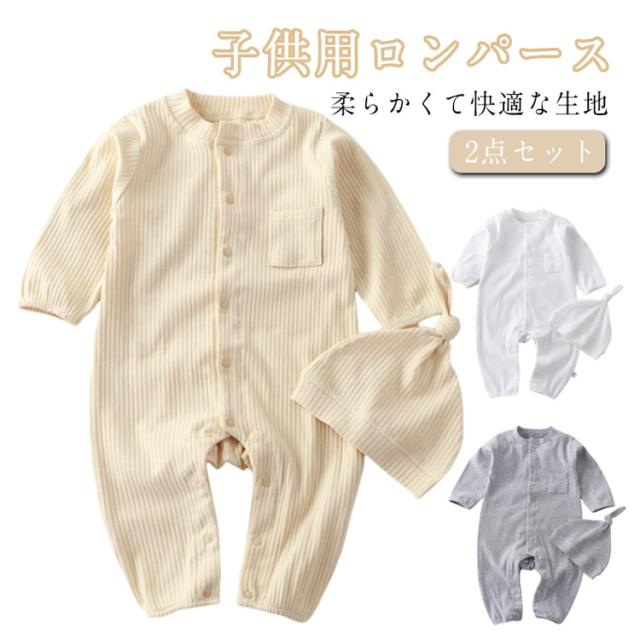 コットン ロンパース ダブルガーゼ 女の子 ベビー 2点セット 長袖 ロンパース 綿 ロンパース 73 男の子 ベビー服 カバーオール 赤ちゃん 新生児服 子供服 66 前開き 80 90 出産祝い 北欧 春物 夏物 春夏 秋 部屋着