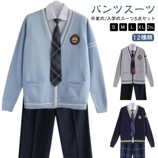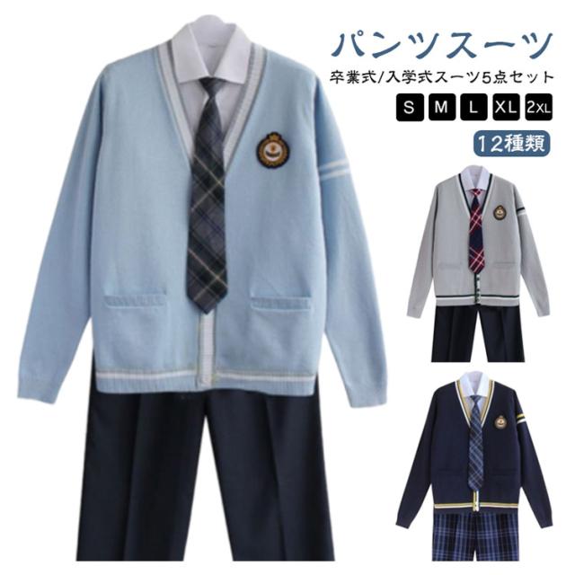 上下セット 【5点セット】 入学式スーツ 卒業式 高校生 【5点セット】 男子 卒業式 コスプレ衣装 男の子 セットアップ 制服 パンツスーツ スーツ フォーマルスーツ セーター 卒業式スーツ キッズ ジュニア コスプレ 発表会 入学式 スーツ ニット
