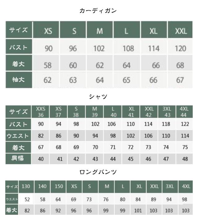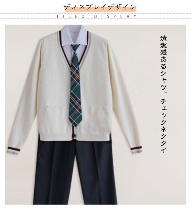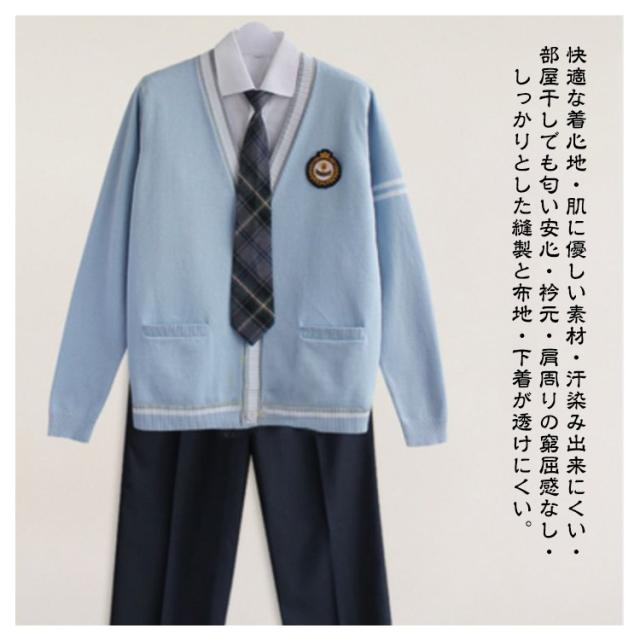 | サイズについての説明 | 【商品説明】 ◆セット内容:セーター+長袖シャツ+バッジ+パンツ+ネクタイ ※上記サイズは平置き実寸になります。 サイズ表の実寸法は商品によって1-3cm程度の誤差がある場合がございます。(単位:cm) |