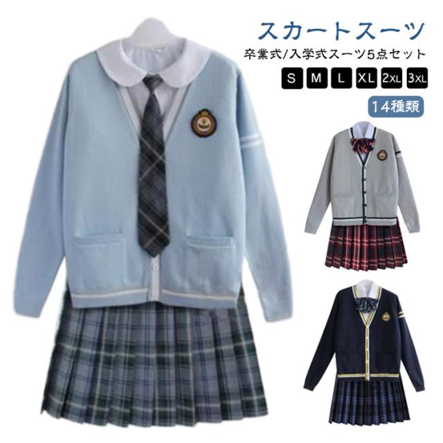 【5点セット】 コスプレ 女子 セットアップ セーター コスプレ衣装 制服 高校生 入学式スーツ フォーマルスーツ 卒業式スーツ 学生 上下セット 卒業式 スーツ 卒業式 女の子 【5点セット】 キッズ ジュニア スカートスーツ 発表会 入学式 スーツ ニット