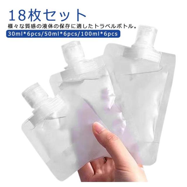 18枚セット トラベルボトル セット 詰め替えボトル 漏れない 18枚セット 旅行ボトル 小分けボトル 出張 化粧水 旅行 携帯用 クリーム 小分け袋 乳液 液体個包装 トラベル ボディソープ シャンプー ボトル 透明 30ml*6/50ml*6/100ml*6 トラベルセット スリム