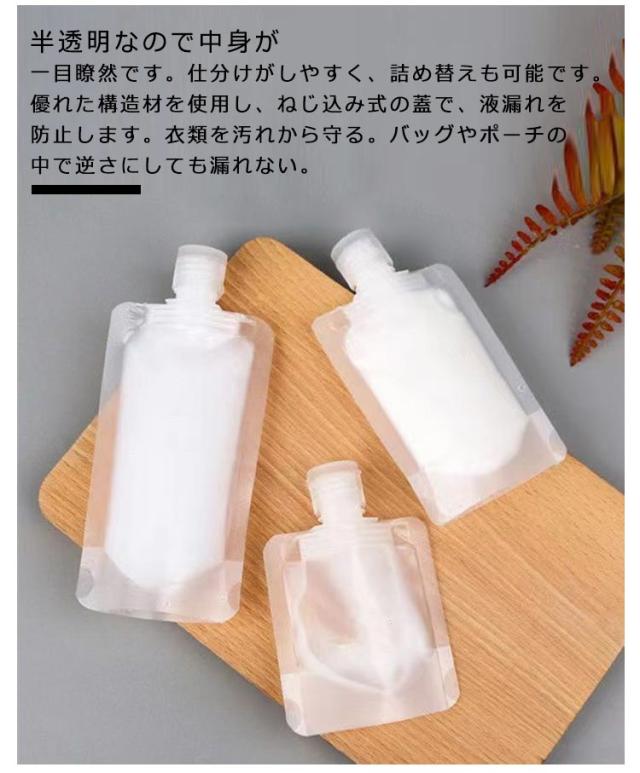 | 様々な質感の液体の保存に適したトラベルボトル。【30ml*6pcs/50ml*6pcs/100ml*6pcs】【18枚セット】 小さくて実用的で、省スペースで持ち運びが簡単です。休暇や出張のたびに便利で、様々なアウトドア活動、トレーニング、出張、登山などに手軽に使える。 高品質のPET製で、繊細な手触りがあり、十分に柔らかく、液体を絞り出しやすい。耐久性があり、詰め替え可能。 防水性と防塵性があり、シャンプー、ボディウォッシュ、ローション、マッサージオイル、洗顔料、その他の化粧品やバス用品の保存に最適です。 半透明なので中身が一目瞭然です。仕分けがしやすく、詰め替えも可能です。優れた構造材を使用し、ねじ込み式の蓋で、液漏れを防止します。衣類を汚れから守る。バッグやポーチの中で逆さにしても漏れない。 | |