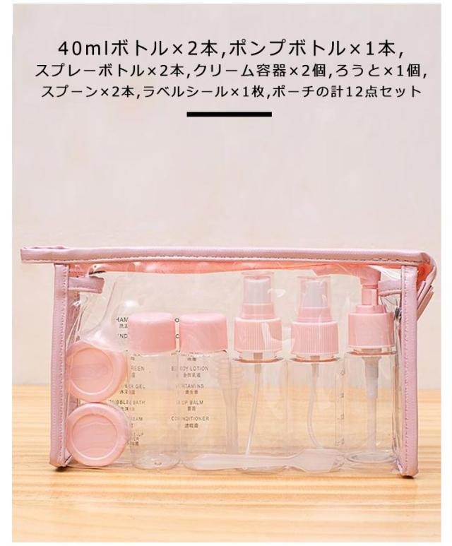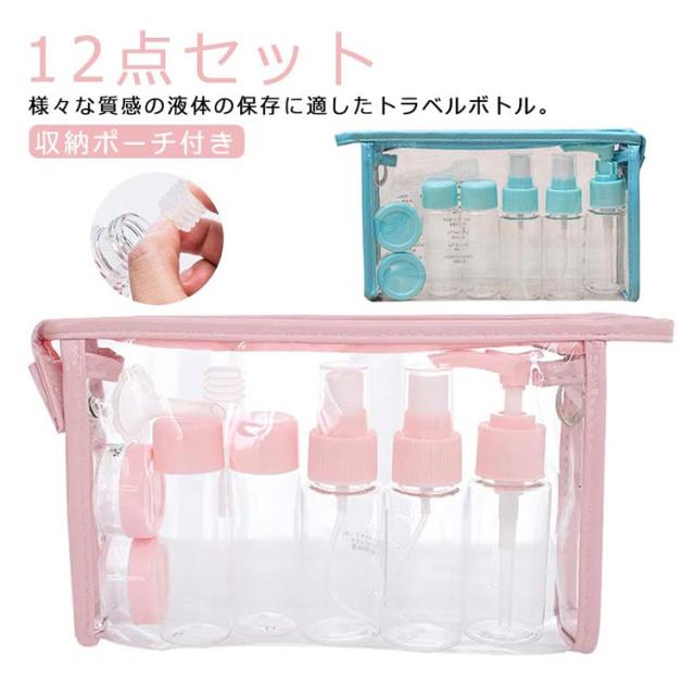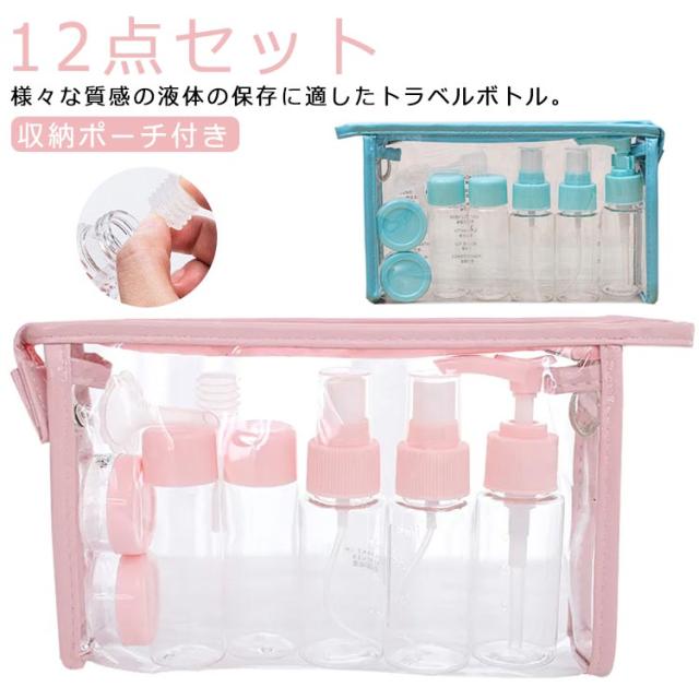 12点セット スプレー トラベルボトル ボディソープ ボトルセット 収納ポーチ付き 乳液 小分けボトル 漏れない ボトル 化粧水 クリーム シャンプー 携帯用 ポンプ 目盛り付き 出張 トラベル 旅行 トラベルセット トラベルボトル ポンプボトル