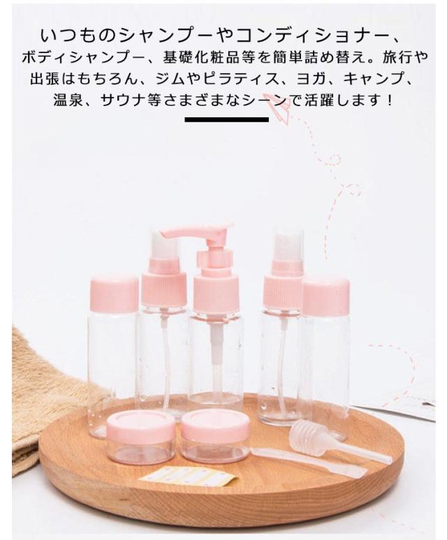 | サイズについての説明 | 40mlボトル×2本,ポンプボトル×1本,スプレーボトル×2本,クリーム容器×2個,ろうと×1個,スプーン×2本,ラベルシール×1枚,ポーチの計12点セット |