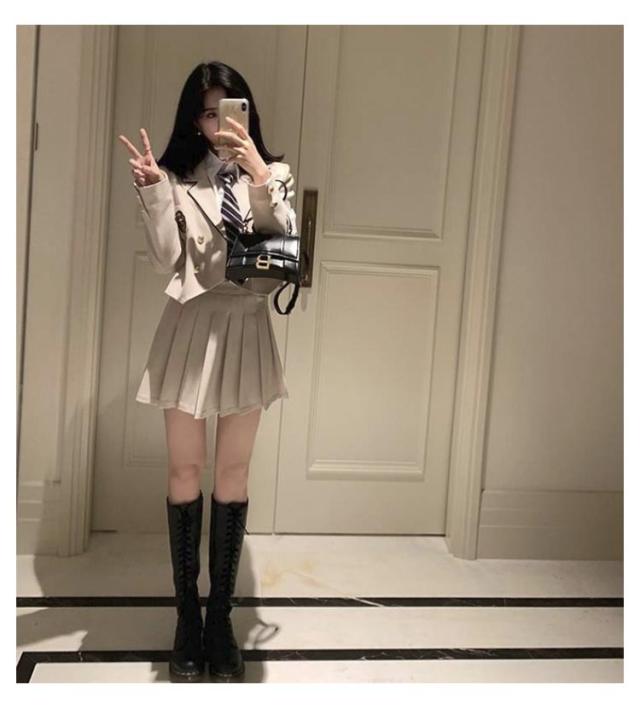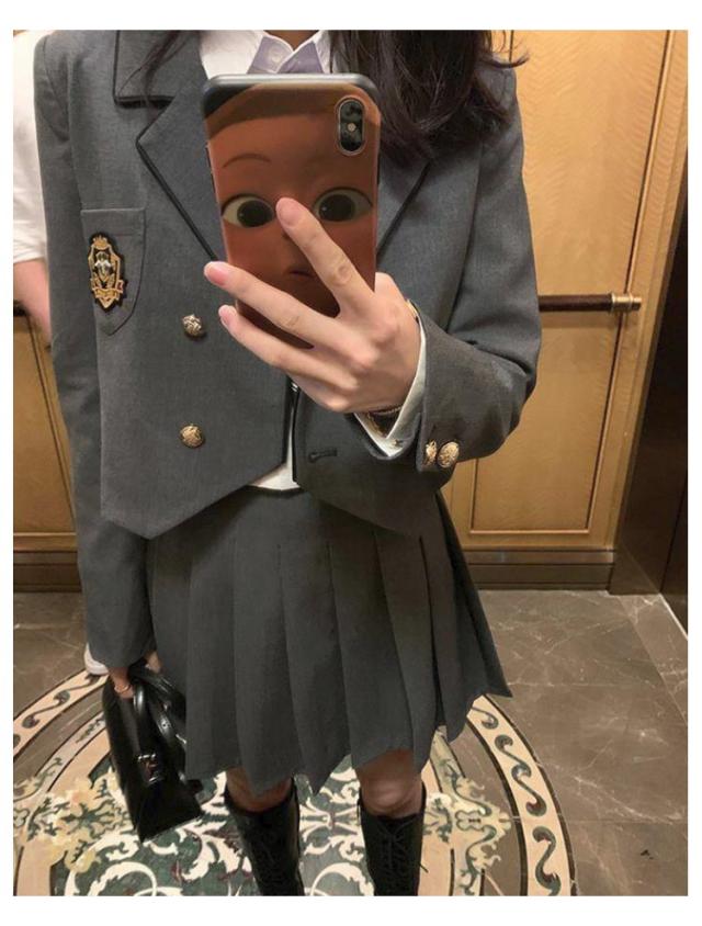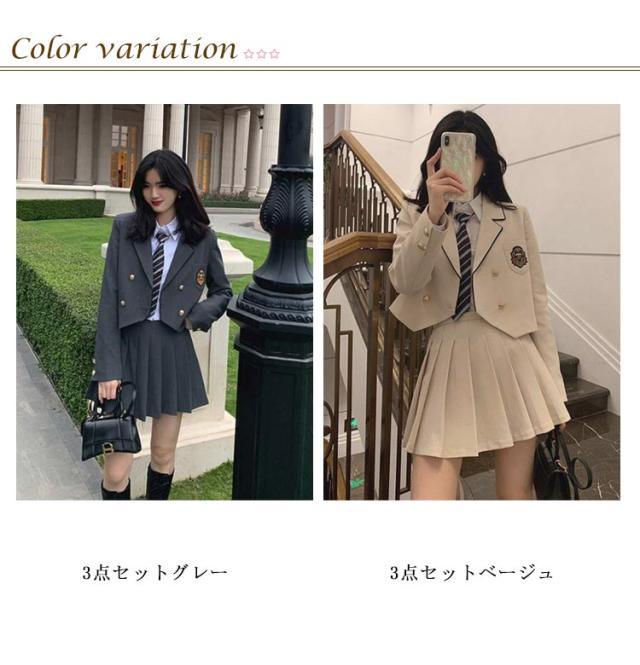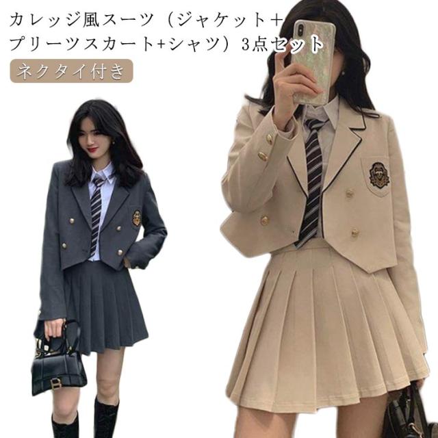 | カレッジ風スーツ(ジャケット+プリーツスカート+シャツ)3点セット ネクタイ付き 春、夏、秋に着用できます 入学シーズン、卒業式、コスプレなどのアクティビティに適しています。 | |