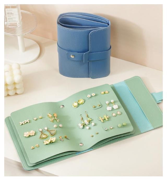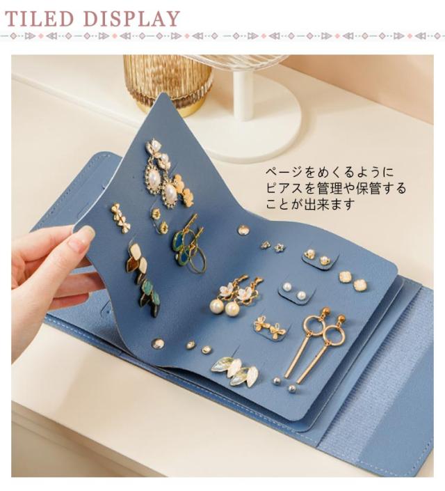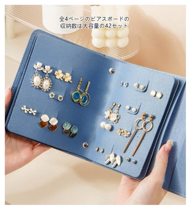本型 ピアスケース 収納ケース アクセサリーケース 手帳型 ジュエリーケース 持ち運び アクセサリー収納 トラベル イヤリング ジュエリー ピアスケース 大容量 小物入れ ピアスケース 収納 アクセサリー ピアス 旅行 ピアス収納 ギフト レディース ブルー