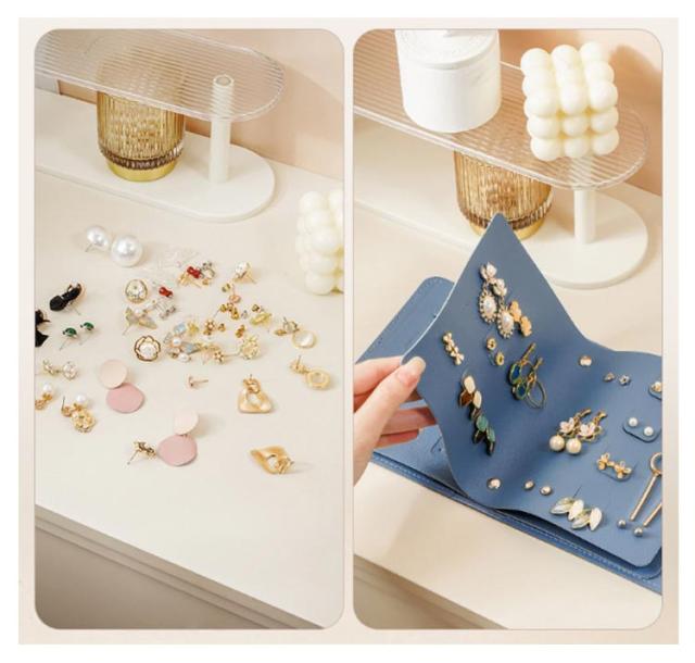 | ピアスケース ページをめくるようにピアスを管理や保管することが出来ます 全4ページのピアスボードの収納数は大容量の42セット 撥水加工生地で汚れにくい | |