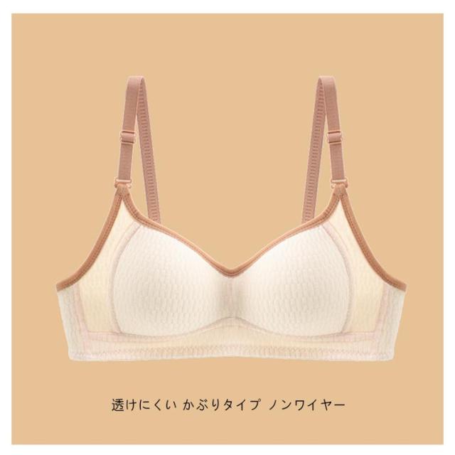 | 透けにくい かぶりタイプ ノンワイヤー できるだけ肌の色に近く血色感のある色みや、肌よりも若干暗いベージュ色が最も透けにくいと言われています カーブがゆるい平らめのカップを採用しているので、成長中のバストでもぶかぶかしにくく、やさしく支えてくれます 肩ストラップは長さを調節できるので、お子さまの成長や体形に合わせてご使用いただけます | |