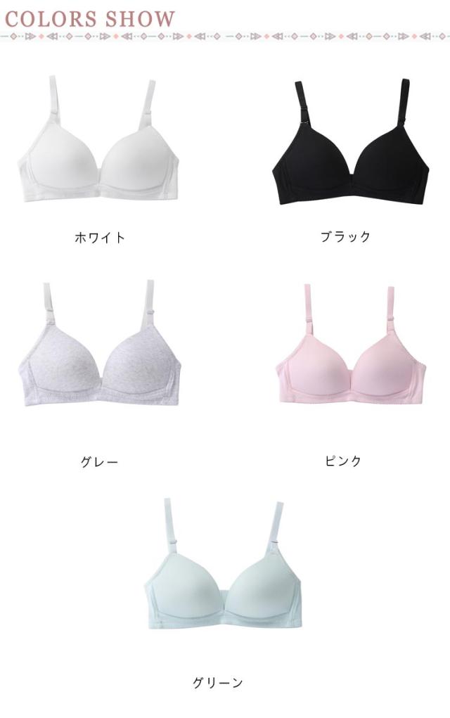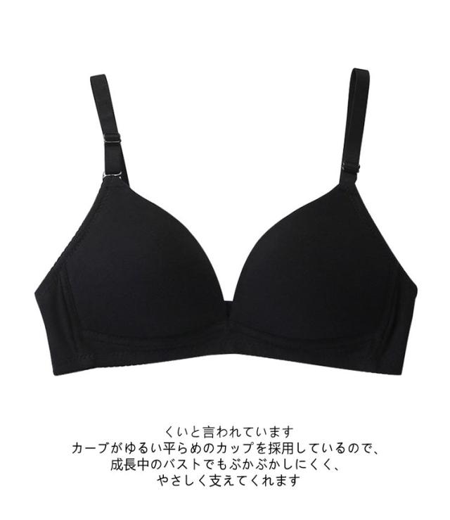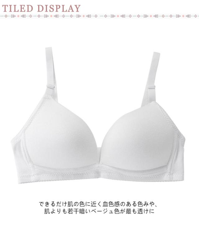 | 透けにくい かぶりタイプ ノンワイヤー できるだけ肌の色に近く血色感のある色みや、肌よりも若干暗いベージュ色が最も透けにくいと言われています カーブがゆるい平らめのカップを採用しているので、成長中のバストでもぶかぶかしにくく、やさしく支えてくれます 肩ストラップは長さを調節できるので、お子さまの成長や体形に合わせてご使用いただけます | |