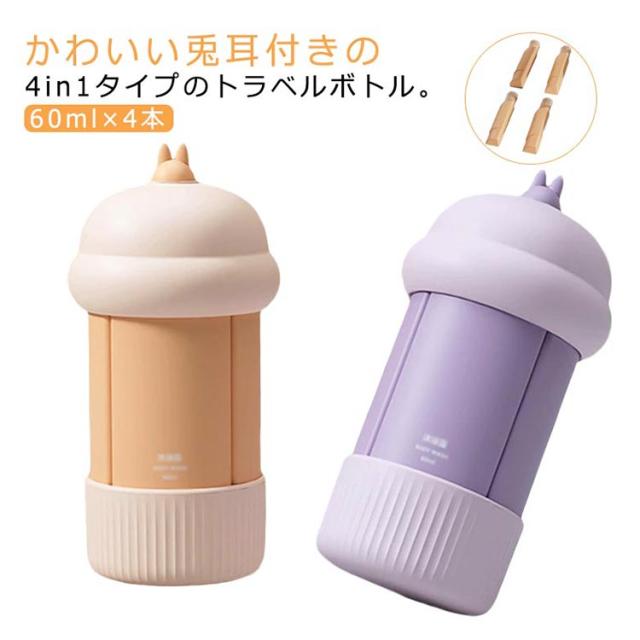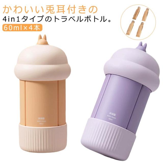 4in1 乳液 旅行用 トラベルボトル 小分けボトル ボトル 60ml シリコン スキンケア クリーム 4in1 化粧水 ボディソープ シャンプー 携帯用 ボトルセット 出張 トラベル トラベルセット 漏れない 小分け容器 詰替容器 セット かわいい