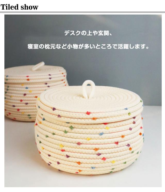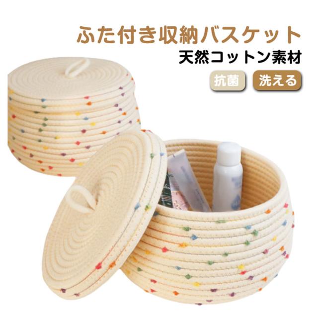 ふた付き 収納ボックス コットン ロープ 収納かご 小物入れ ロープバスケット 収納バスケット カゴ 収納バスケット 小物整理 デスク整理 卓上収納かご かご 洗える 装飾バスケット 玄関収納 ナチュラル おもちゃ収納ボックス 収納ケース