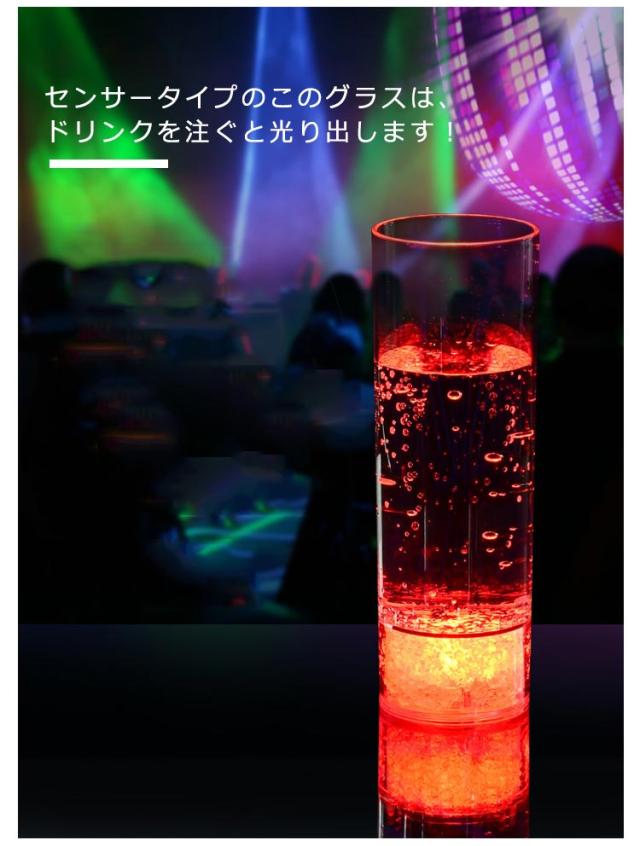 | 7種色チェンジ可能の光るストレートグラス。【2個セット】【繰り返し使用可能】 センサータイプのこのグラスは、ドリンクを注ぐと光り出します! ドリンクを注ぐと気泡がLEDの光で美しく輝きます! バランスのとれた美しいデザイン!結婚式・クラブパーティー・ホームパーティーと使うシーンを選びません! パーティー・イベントを新しい光りの演出で盛り上げちゃってください♪ 一度使うともう普通のグラスでの乾杯では物足らなくなること間違いなし! 水洗いで繰り返し使用可能。 | |