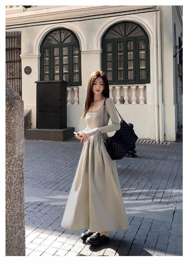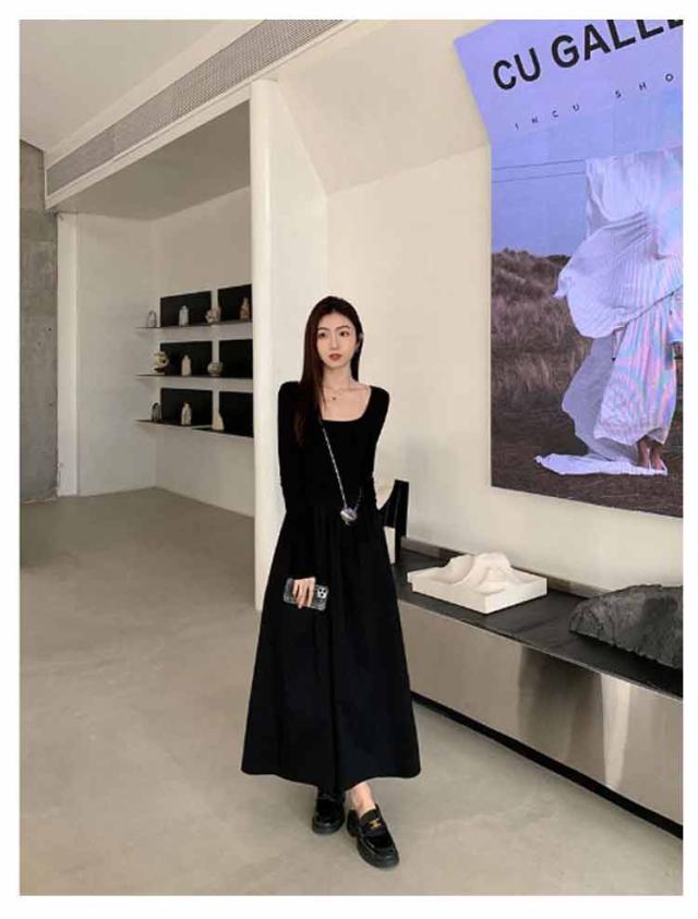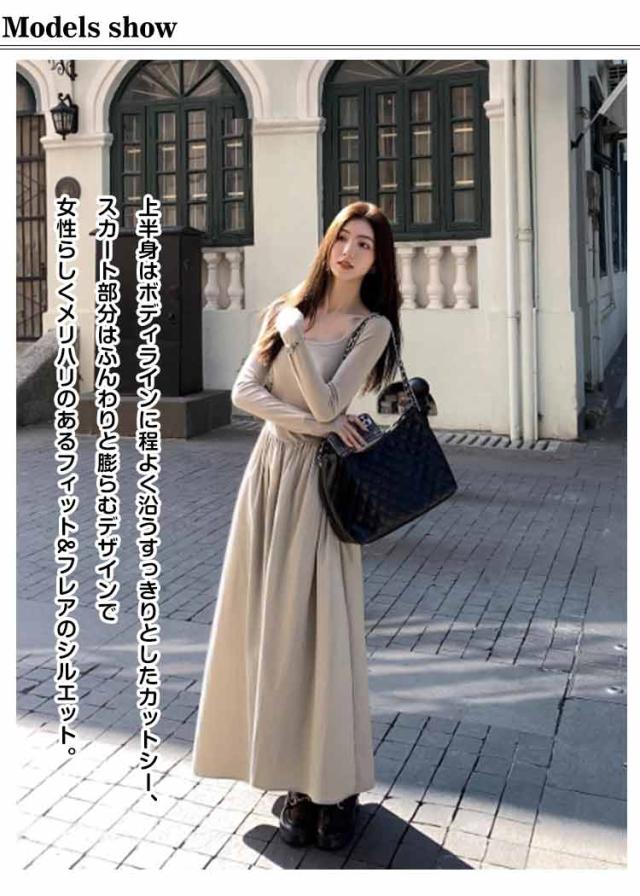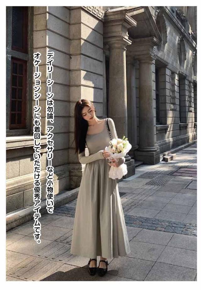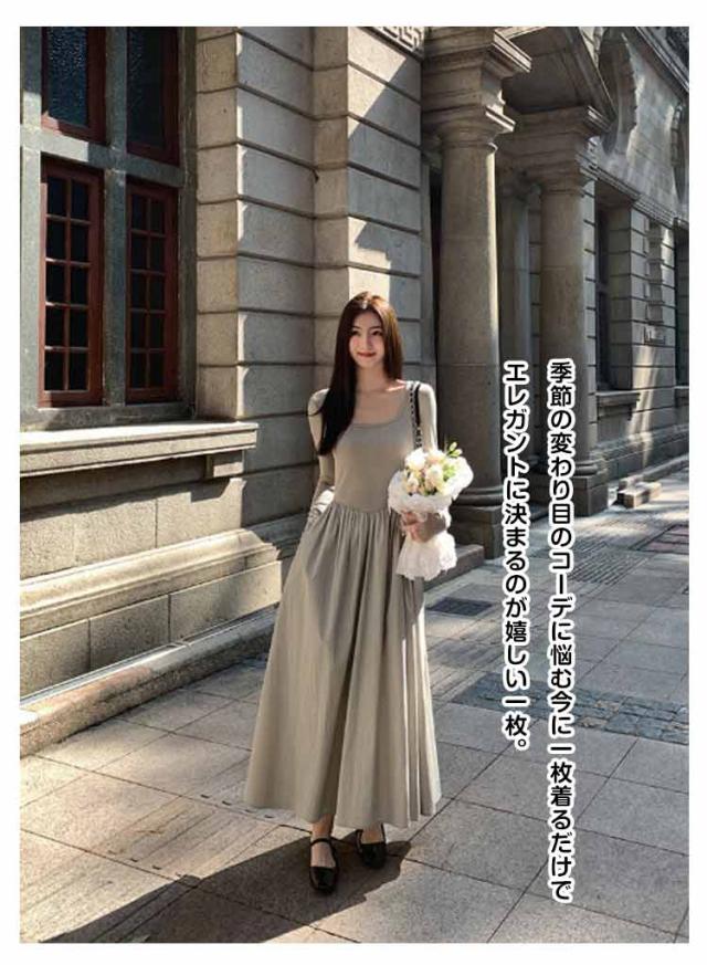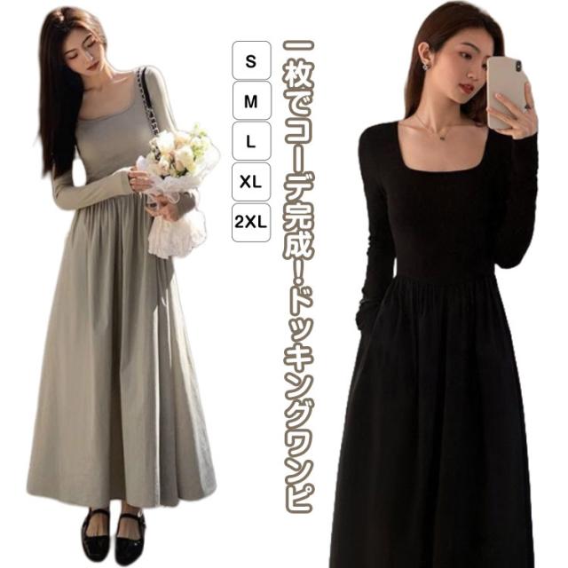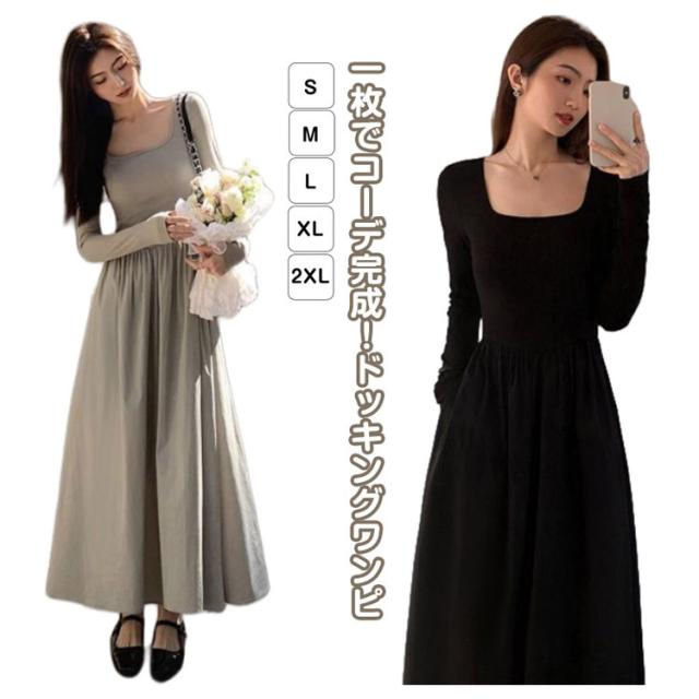 ロングワンピース ドッキング ワンピ 可愛い Aライン ドッキング 膝下 長袖 ワンピース 着痩せ 無地 カジュアル きれいめ 無地 30代 マタニティ 普段着 通勤 ワンピース 20代 40代 50代