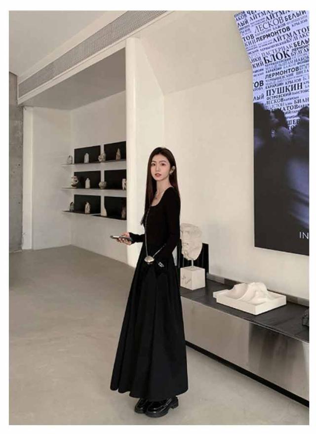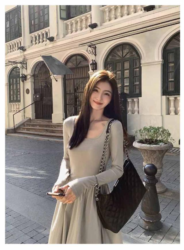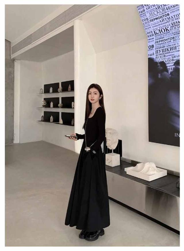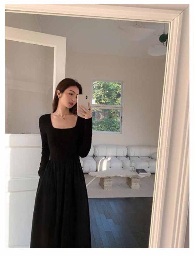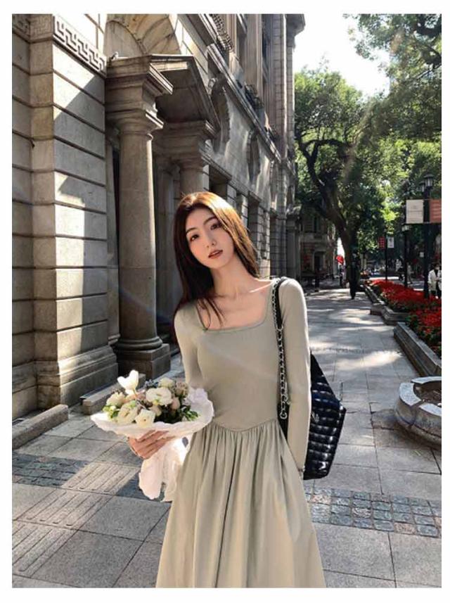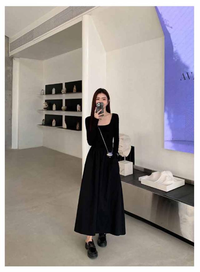 ロングワンピース ドッキング ワンピ 可愛い Aライン ドッキング 膝下 長袖 ワンピース 着痩せ 無地 カジュアル きれいめ 無地 30代 マタニティ 普段着 通勤 ワンピース 20代 40代 50代